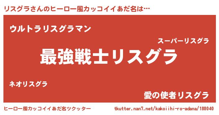 | 男性向けラノベタイトル風あだ名 | 『うちのリスグラが世界を掌握している!』 |