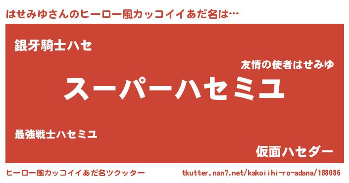 | ポケモン風あだ名 | 『ハセチュウ』『ヒハセミユ』 |