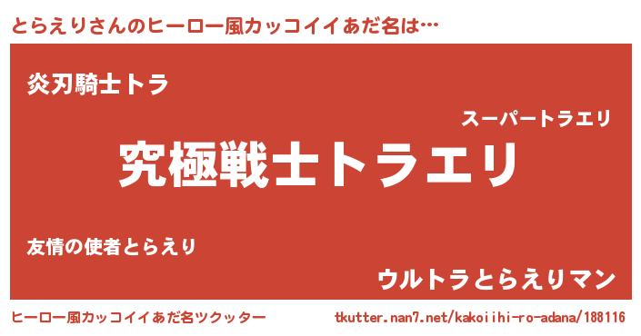 | 女子向けラノベタイトル風あだ名 | 『とらえりストレイドッグス』 |