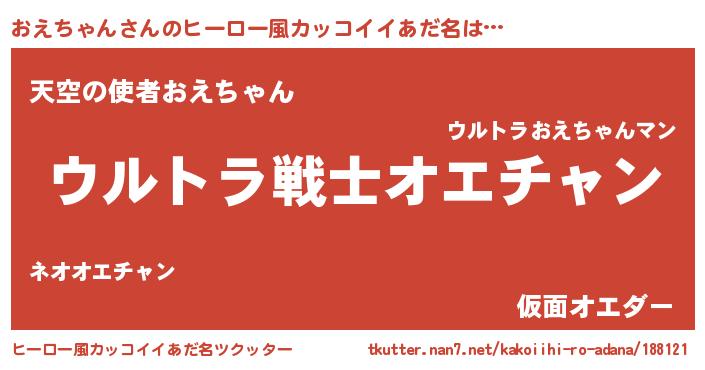 | 女子向けラノベタイトル風あだ名 | 『おえちゃんなんてお断りですっ。』 |