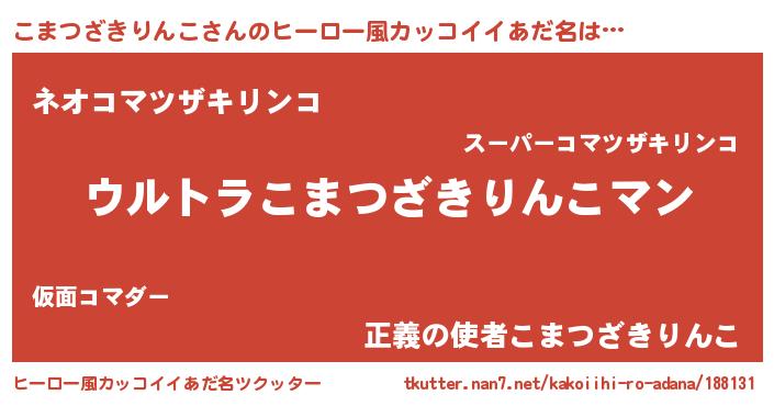 | 男性向けラノベタイトル風あだ名 | 『やはりこまつざきりんこの青春ラブコメはまちがっている 』 |