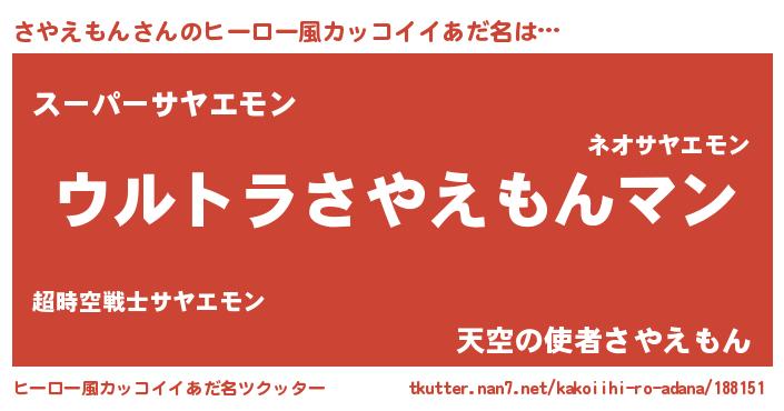 | 男性向けラノベタイトル風あだ名 | 『うちのさやえもんが世界を掌握している!』 |