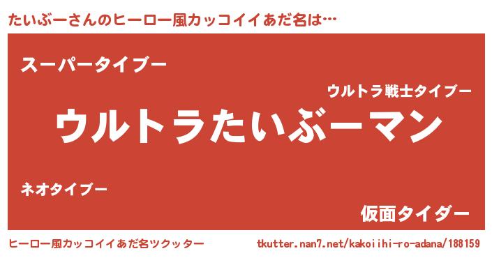 | 男性向けラノベタイトル風あだ名 | 『うちの娘の為ならば、俺はもしかしたらたいぶーも倒せるかもしれない。』 |