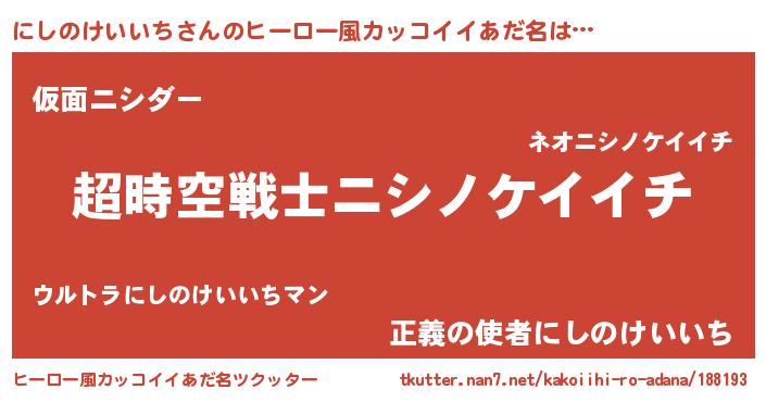 | 意味不明あだ名 | 『自称にしのけいいち』 |