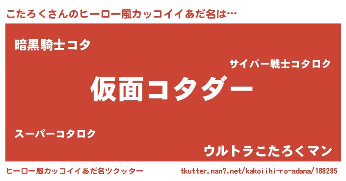 | 男性向けラノベタイトル風あだ名 | 『この素晴らしい世界にこたろくを!』 |