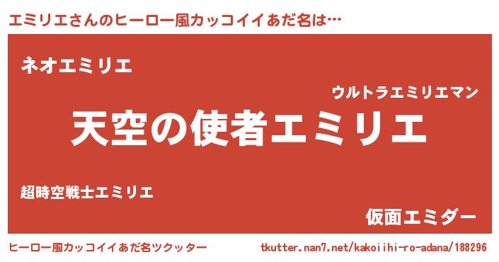 | 男性向けラノベタイトル風あだ名 | 『ノーゲーム・ノーエミリエ』 |