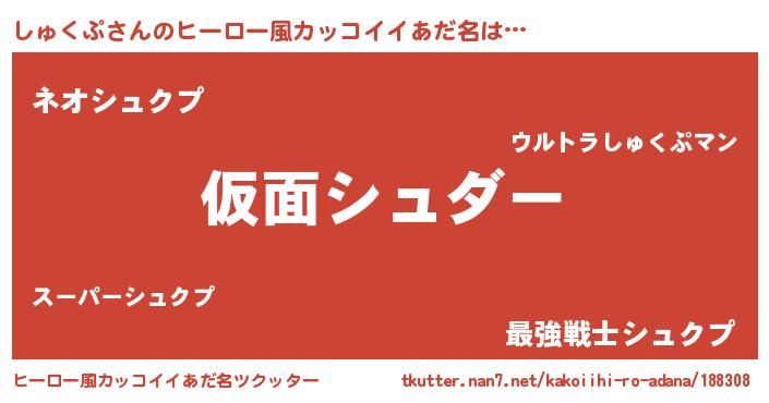 | 男性向けラノベタイトル風あだ名 | 『魔弾の王としゅくぷ』 |