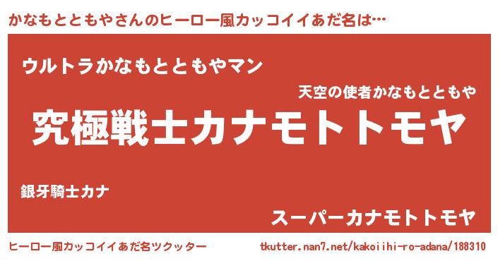 | 男性向けラノベタイトル風あだ名 | 『Re:かなもとともやから始める異世界生活』 |