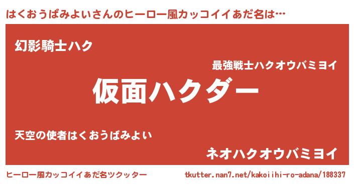 | 意味不明あだ名 | 『住所不定無職はくおうばみよい(91歳)』 |