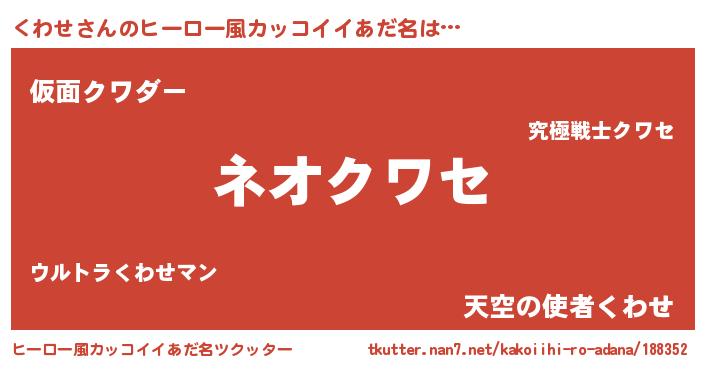 | ヘコむあだ名 | 『くわせ(爆)』『酢こんぶ』『くわお』 |