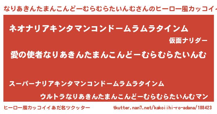 | 胡散臭い通販商品みたいなあだ名 | 『お金では代えられない隕石のかけら…その名も「なりあきんたまんこんどーむらむらたいんむ」』 |