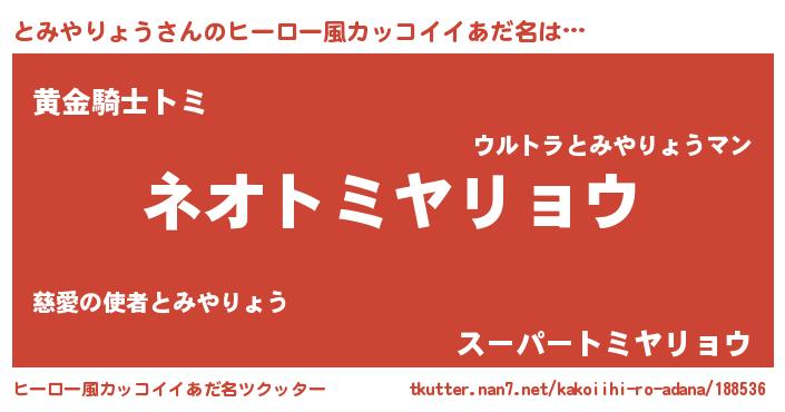 | 男性向けラノベタイトル風あだ名 | 『とみやりょうという概念が存在しない退屈な世界 』 |