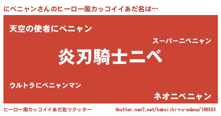 | 男性向けラノベタイトル風あだ名 | 『にべニャンの嫁は女の子じゃないと思った?』 |