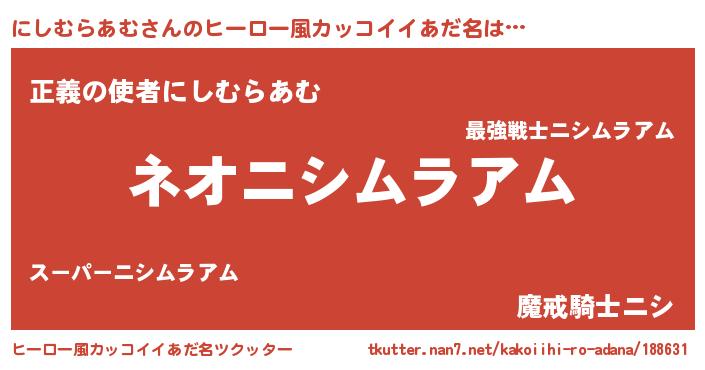 | 伝説のあだ名 | 『古より伝わる暗殺者にしむらあむ』 |