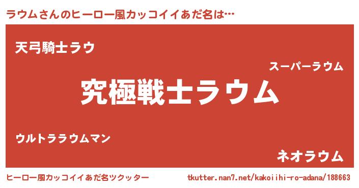 | 女子向けラノベタイトル風あだ名 | 『ラウムの玉の輿計画!』 |