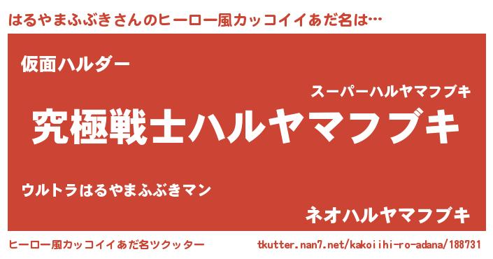 | 男性向けラノベタイトル風あだ名 | 『Re:はるやまふぶきから始める異世界生活』 |