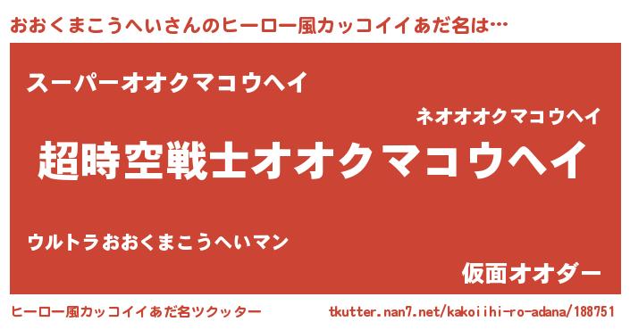 | 欧米人風あだ名 | 『ケンブリッジおおくまこうへい』 |