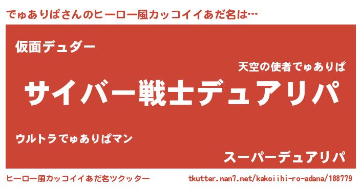 でゅありぱさんのヒーロー風カッコイイあだ名をツクッター!