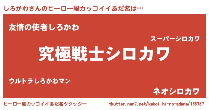 | 女子向けラノベタイトル風あだ名 | 『しろかわストレイドッグス』 |