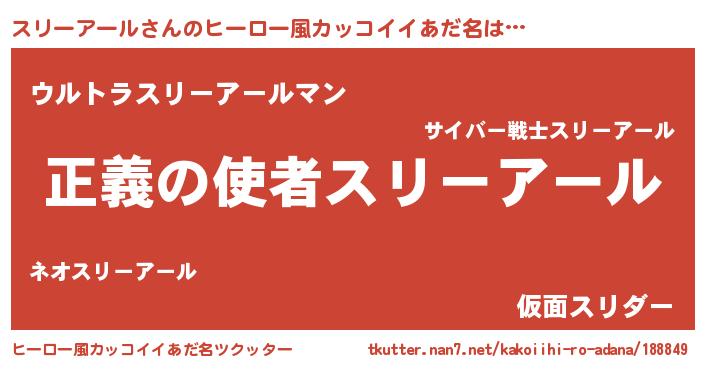 | 男性向けラノベタイトル風あだ名 | 『緋弾のスリーアール』 |