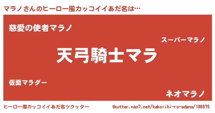 | ヘコむあだ名 | 『マラっぺ』『マラノ(笑)』『豆乳』 |