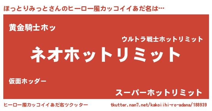 | ポケモン風あだ名 | 『ゼニホッ』『ヒホットリミット』 |