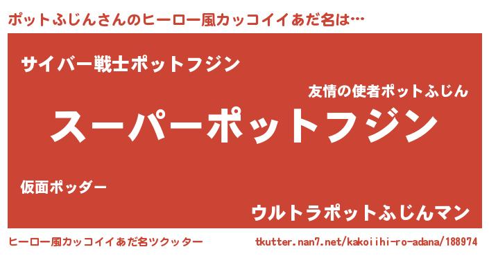 | 男性向けラノベタイトル風あだ名 | 『ポットフジンアートオンライン』 |