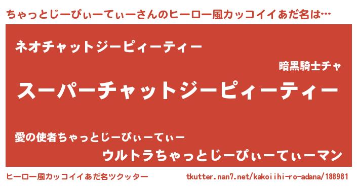 | 胡散臭い通販商品みたいなあだ名 | 『モテモテ間違いなし霊験あらたかなお札…その名も「ちゃっとじーぴぃーてぃー」』 |