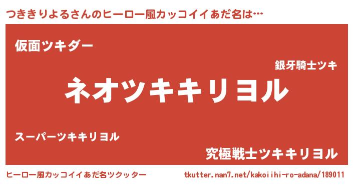 | 男性向けラノベタイトル風あだ名 | 『つききりよる~年齢イコール彼女いない歴の魔法使い~』 |