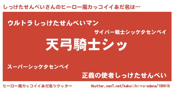 | 欧米人風あだ名 | 『ウサインしっけたせんべい』 |