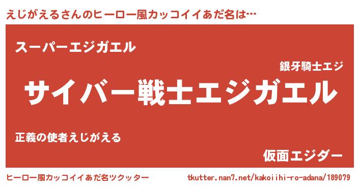 | 男性向けラノベタイトル風あだ名 | 『Re:えじがえるから始める異世界生活』 |