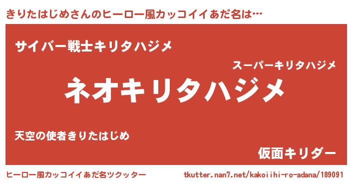 | ヘコむあだ名 | 『きりたはじめ(遠い目)』『きりにゅー』 |