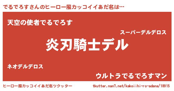 | 男性向けラノベタイトル風あだ名 | 『でるでろすの嫁は女の子じゃないと思った?』 |