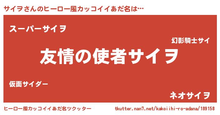 | 男性向けラノベタイトル風あだ名 | 『転生したらサイヲだった件』 |