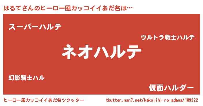 | ヘコむあだ名 | 『はるて(笑)』『はるにー』『はるお』 |