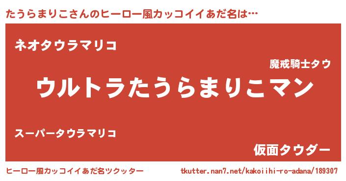たうらまりこさんのヒーロー風カッコイイあだ名をツクッター!
