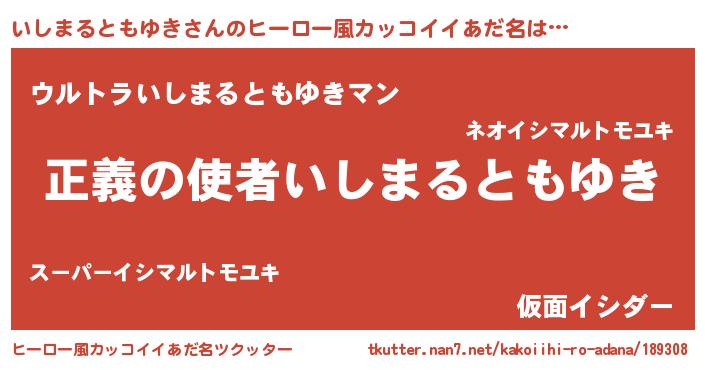 | 男性向けラノベタイトル風あだ名 | 『おまえをオタクにしてやるから、俺をいしまるともゆきにしてくれ! 』 |