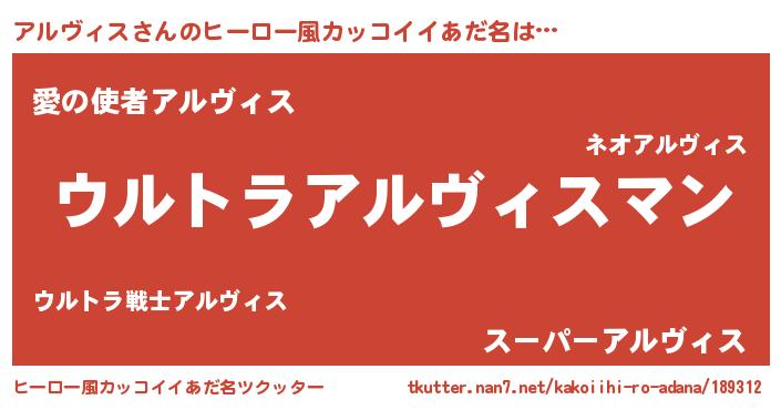 アルヴィスさんのヒーロー風カッコイイあだ名をツクッター!