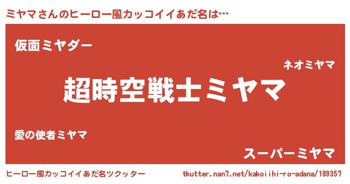 | 意味不明あだ名 | 『自称ミヤマ』『住所不定無職ミヤマ(91歳)』 |