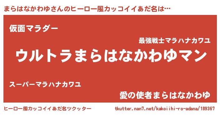 | 女子向けラノベタイトル風あだ名 | 『シンデレラまらはなかわゆ家の靴箱館』 |