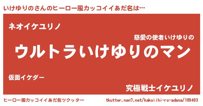 | 男性向けラノベタイトル風あだ名 | 『うちの娘の為ならば、俺はもしかしたらいけゆりのも倒せるかもしれない。』 |
