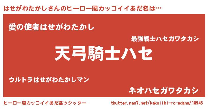 | 男性向けラノベタイトル風あだ名 | 『はせがわたかしに滅ぼされるだけの簡単なお仕事です』 |