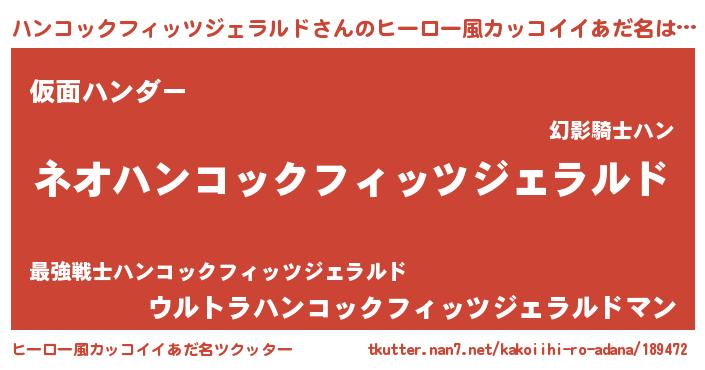 | ヘコむあだ名 | 『ハンコックフィッツジェラルド(震え声)』 |