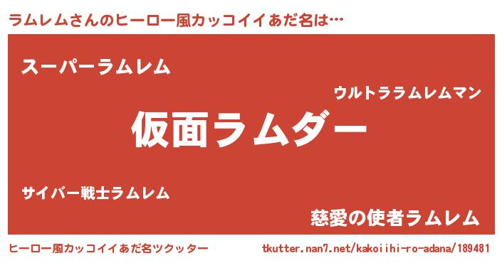 | 意味不明あだ名 | 『住所不定無職ラムレム(47歳)』 |