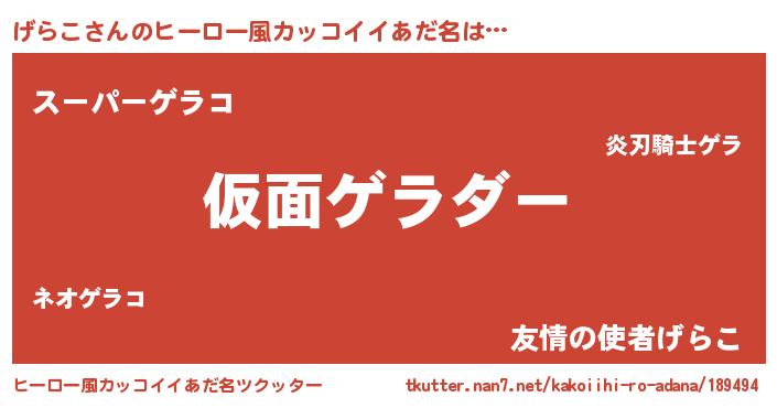 | 意味不明あだ名 | 『住所不定無職げらこ(14歳)』 |
