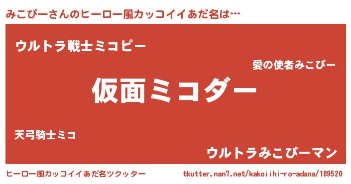 | 意味不明あだ名 | 『住所不定無職みこぴー(4歳)』 |