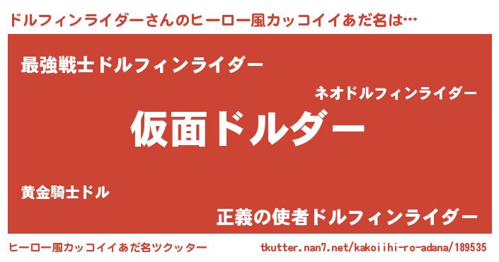 | 男性向けラノベタイトル風あだ名 | 『この素晴らしい世界にドルフィンライダーを!』 |