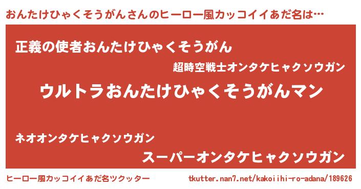 | 意味不明あだ名 | 『おんたけひゃくそうがんフォーエバー』 |