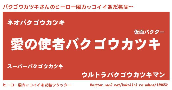 | 男性向けラノベタイトル風あだ名 | 『おまえをオタクにしてやるから、俺をバクゴウカツキにしてくれ! 』 |