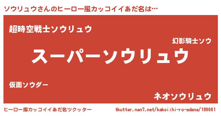 | ヘコむあだ名 | 『ソウっふぃ~』『ソウリュウ(笑)』 |